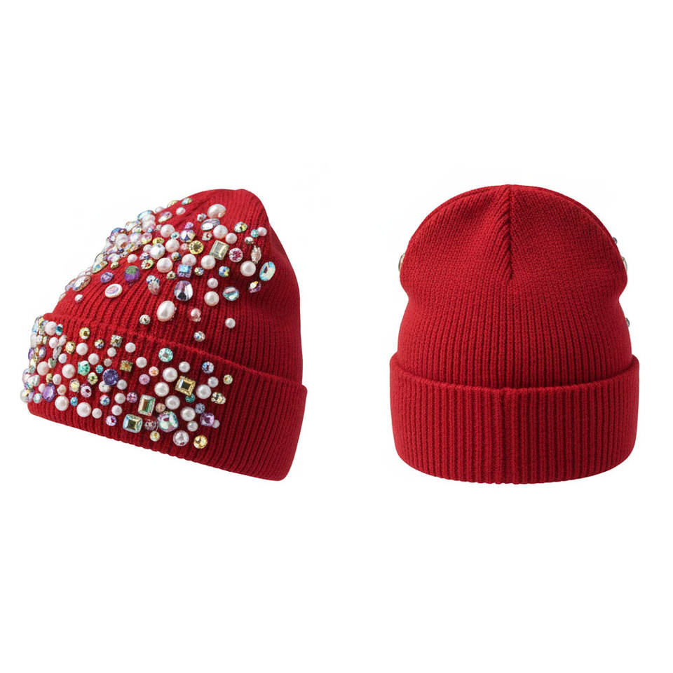 Bonnet chaud personnalisé de qualité supérieure avec strass scintillants, motif pierre, logo imprimé, épais et tendance