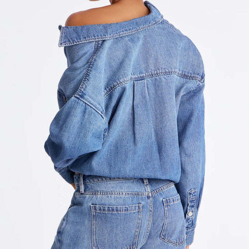 Ensemble Bermuda en jean pour femme, chemisier cargo ceinturé de créateur, collection printemps-été haut de gamme, vente en gros personnalisée