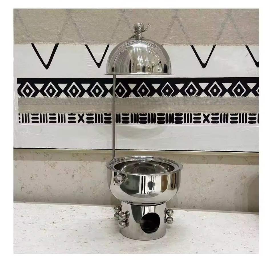 Ensemble de marmites en acier inoxydable de qualité supérieure avec base de brûleur décorative et plateau pour restaurant, buffet et repas à domicile