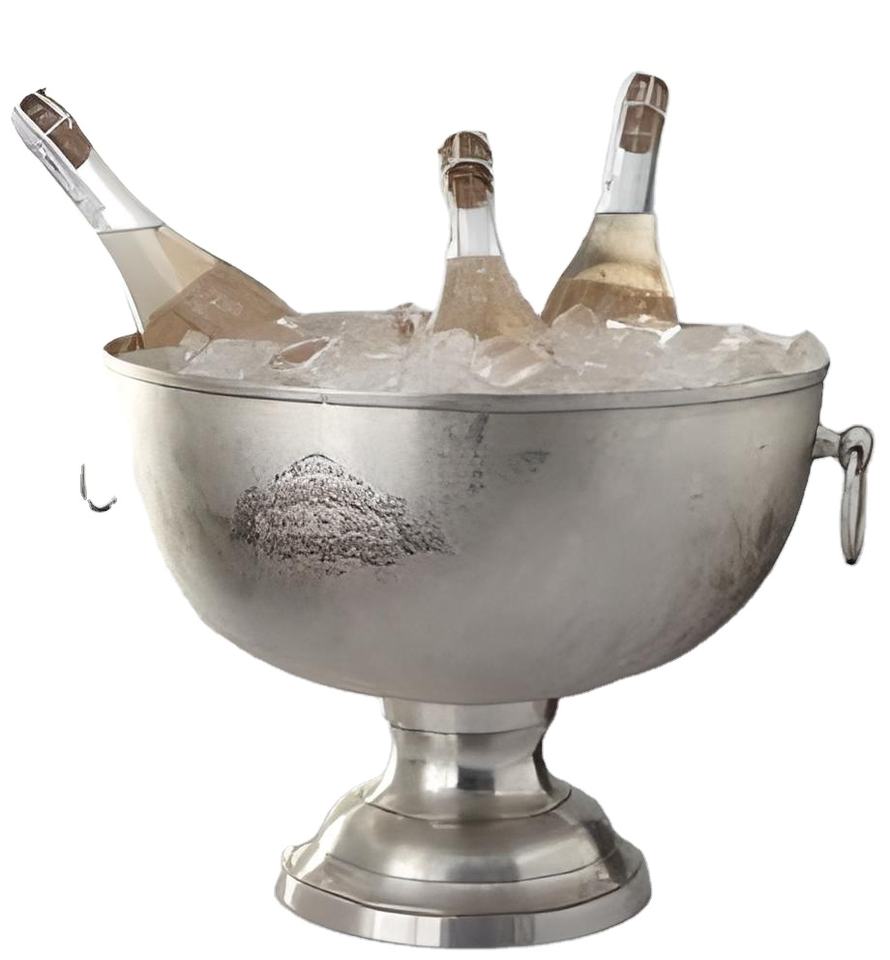 Seau à glace en acier inoxydable de qualité supérieure avec poignées en anneau et pompon décoratif | Refroidisseur à vin et à champagne | Décoration de table pour bar et hôtel