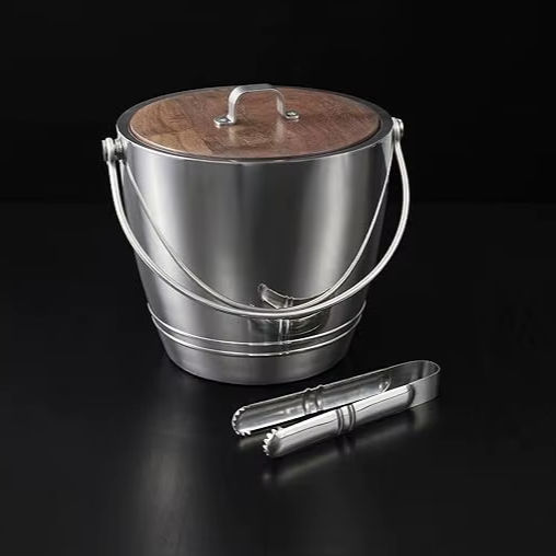 Seau à glace en acier inoxydable de qualité supérieure avec couvercle, finition noire mate, design isolé, garde la glace congelée pour la maison, le bar et les fêtes