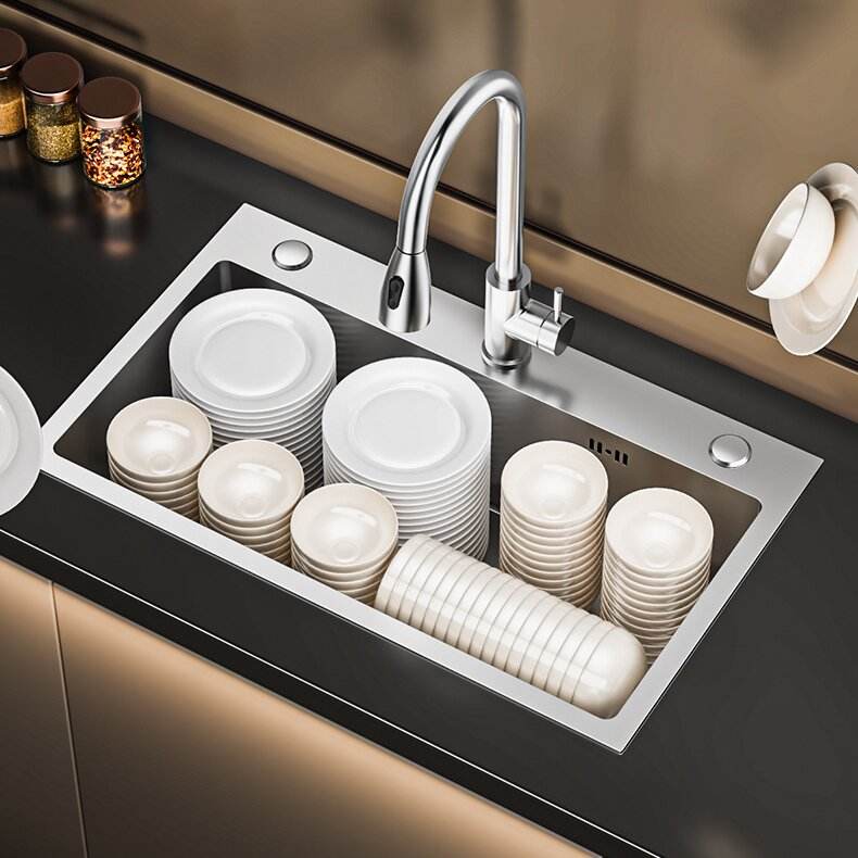 Évier de cuisine en acier inoxydable de qualité supérieure, grand bac unique, épaissi, à encastrer sous le plan, pour usage domestique