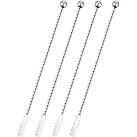 Ensemble de fouets à cocktail longs en acier inoxydable de qualité supérieure, quatre cuillères à mélanger réutilisables pour bar, au meilleur prix