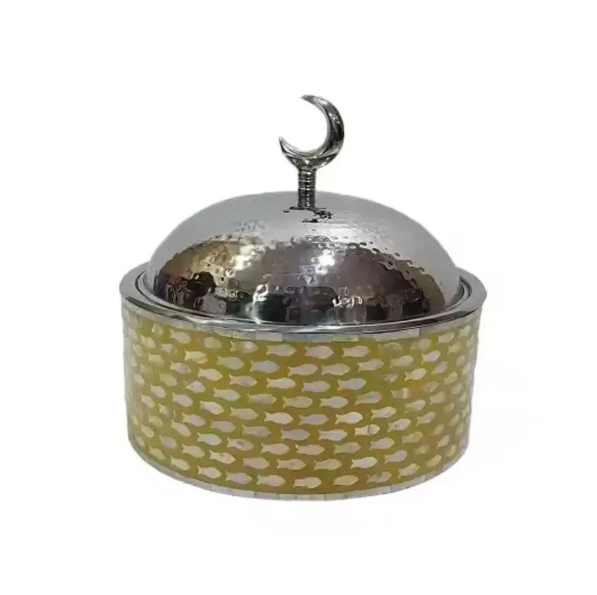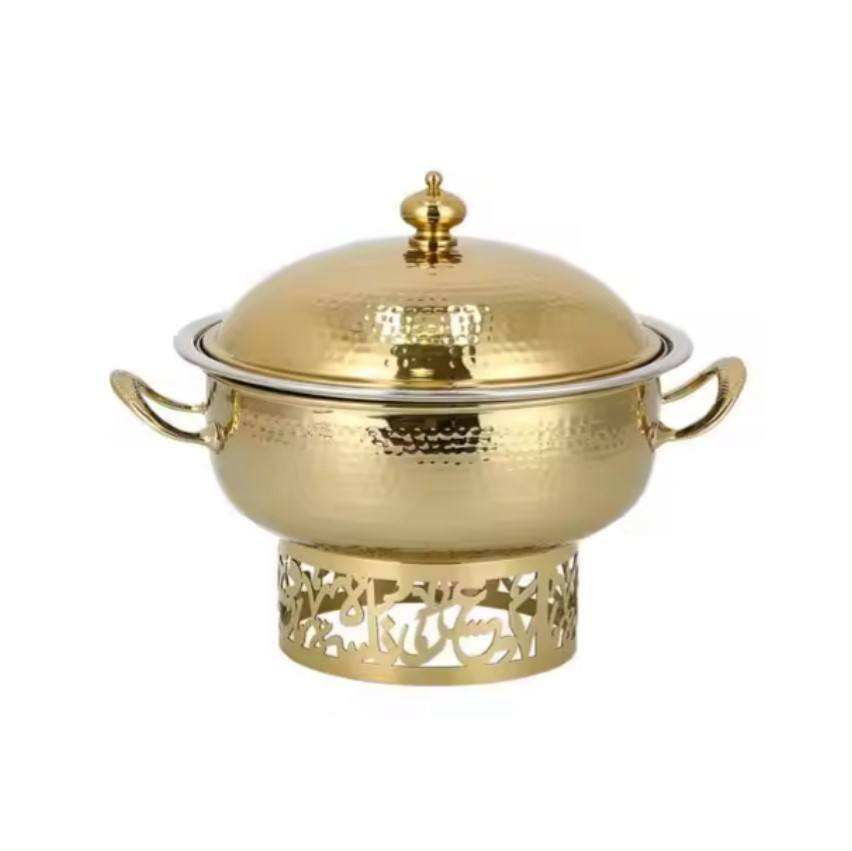 Marmite en acier de qualité supérieure avec couvercle Casserole en aluminium à double paroi et conception de feuille jaune pour chauffe-plats de table