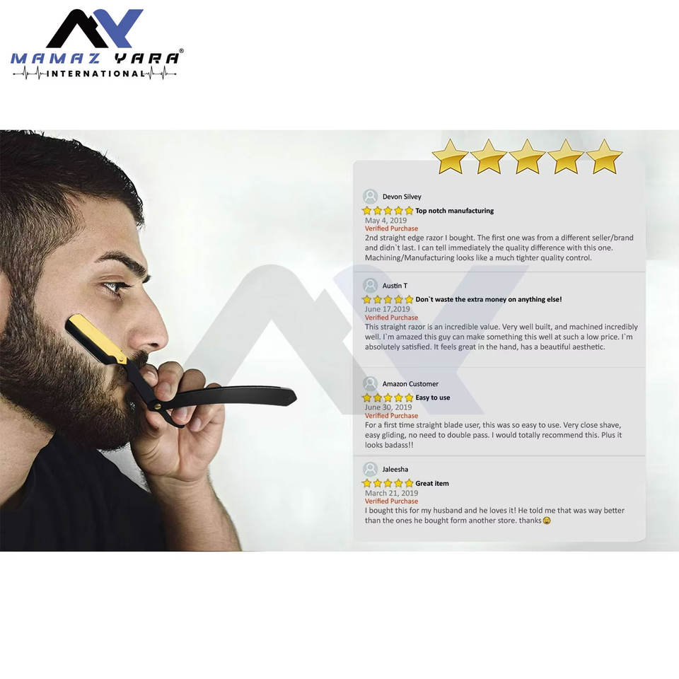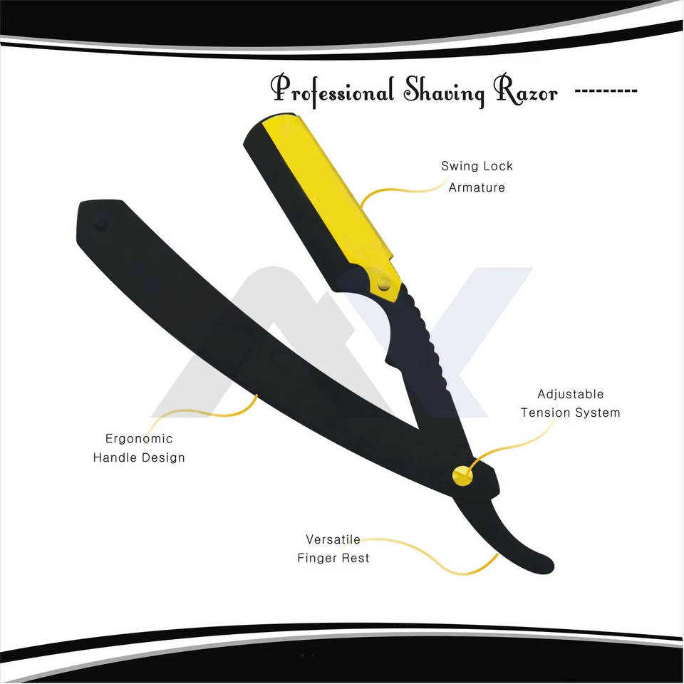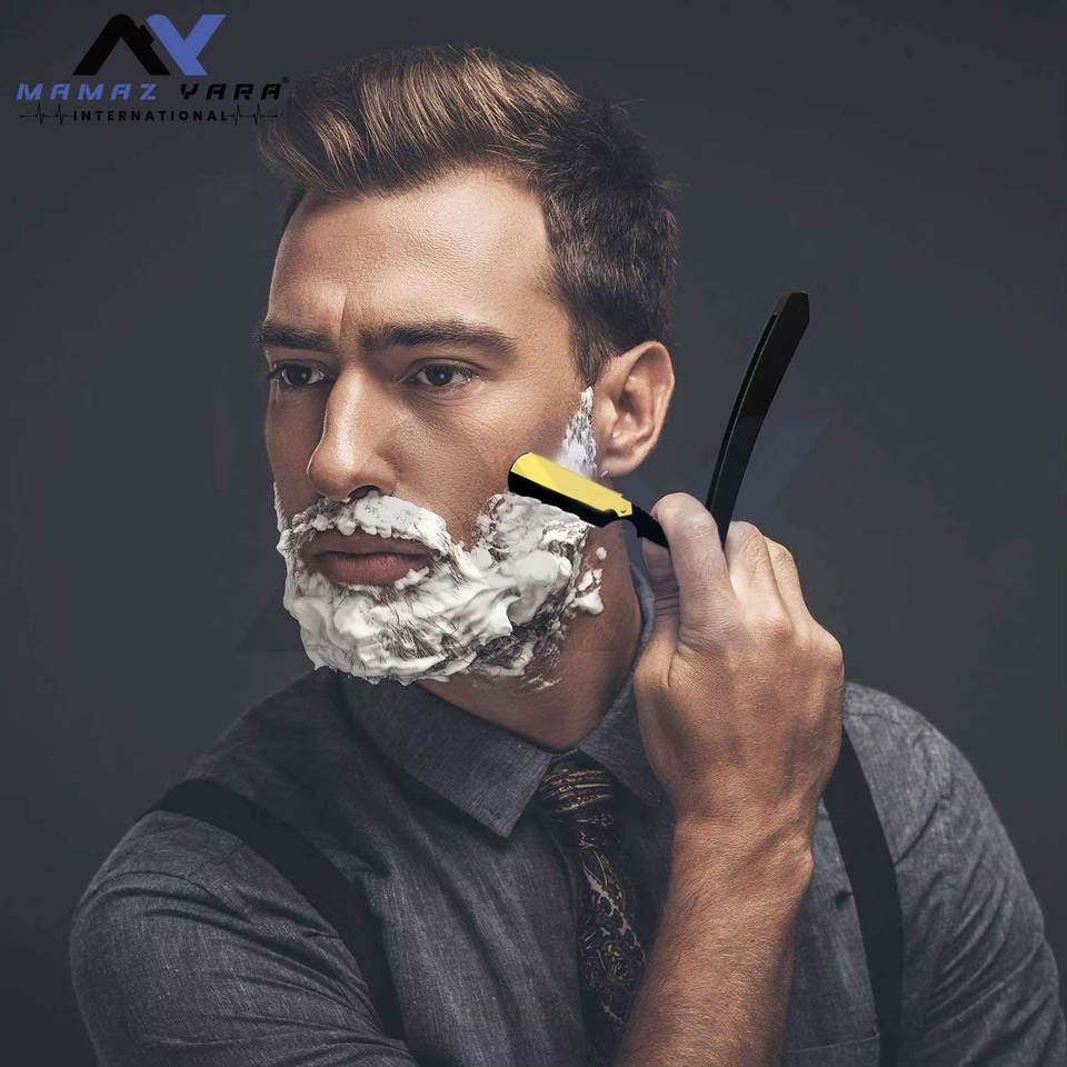 Rasoir de Barbier Professionnel à Lame Droite de Qualité Supérieure, Type Shavette, pour un Rasage de Salon avec Support de Lame en Acier Inoxydable