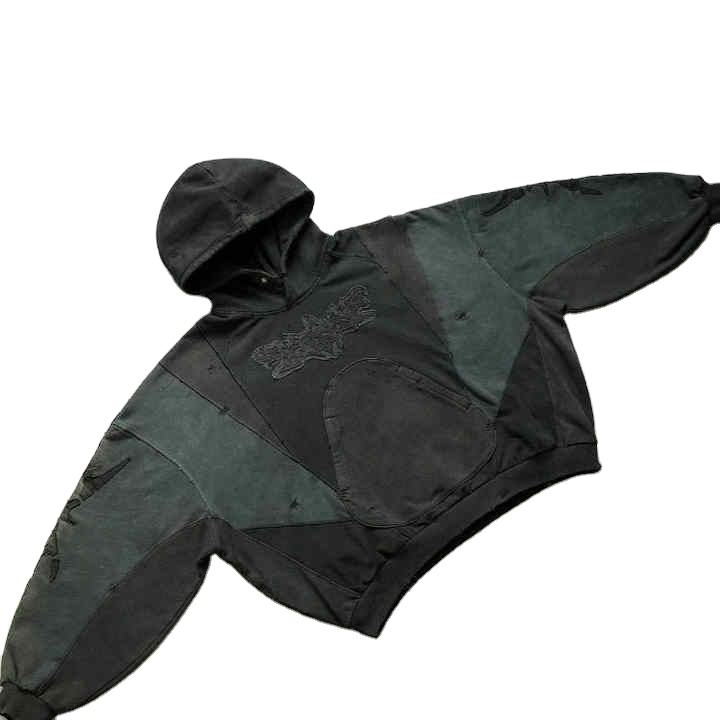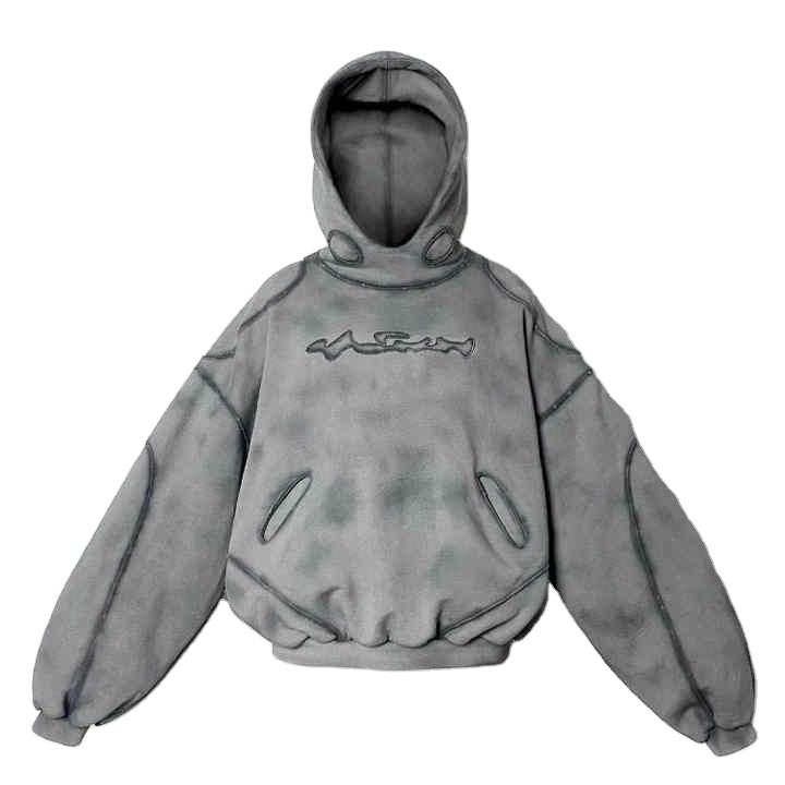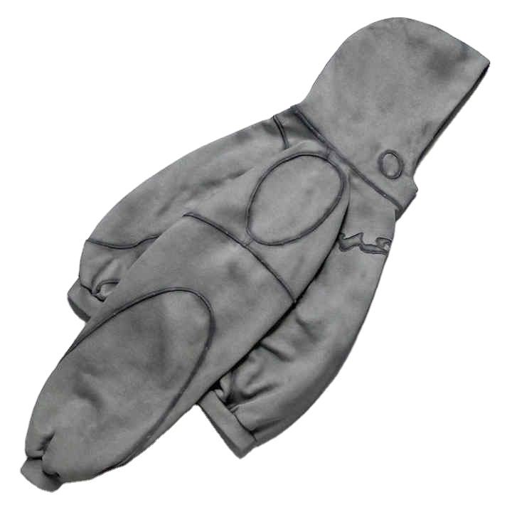 Premium Sun Faded Vintage Custom Streetwear Double Layer Stitched Ripped Acid Washed Gray Heavyweight 500 Gsm Pullover Hoodie