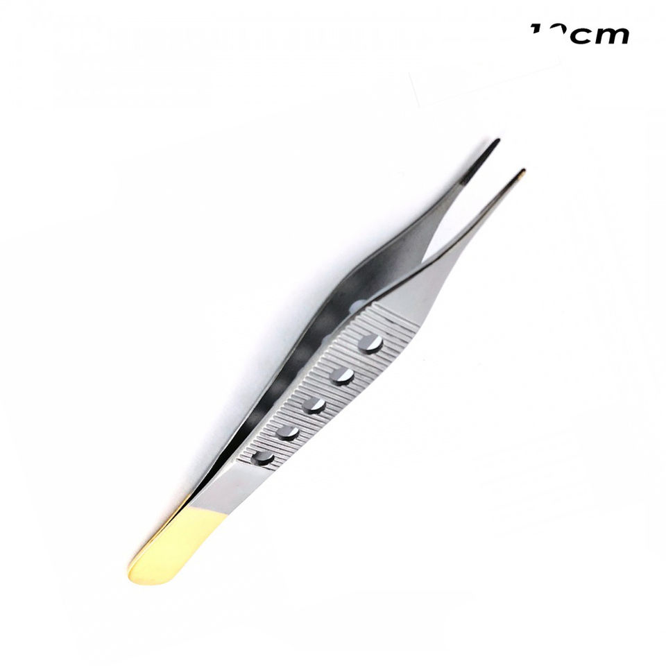 Pinces chirurgicales de dissection de qualité supérieure pour une manipulation précise des tissus, 1x2 dents, demi-or, 12 cm, en acier allemand