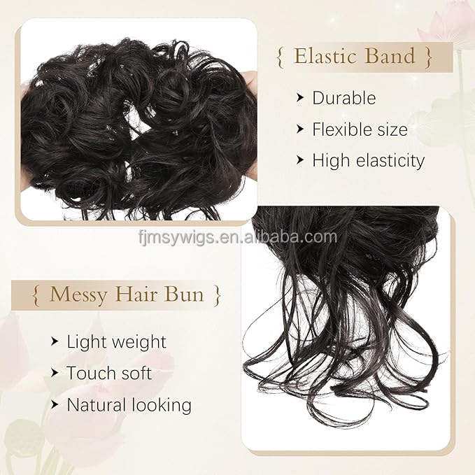 Fibre synthétique de qualité supérieure longue queue perruque bouclés ondulés cheveux chignon Extensions Offre Spéciale désordonné chouchous femmes bande élastique