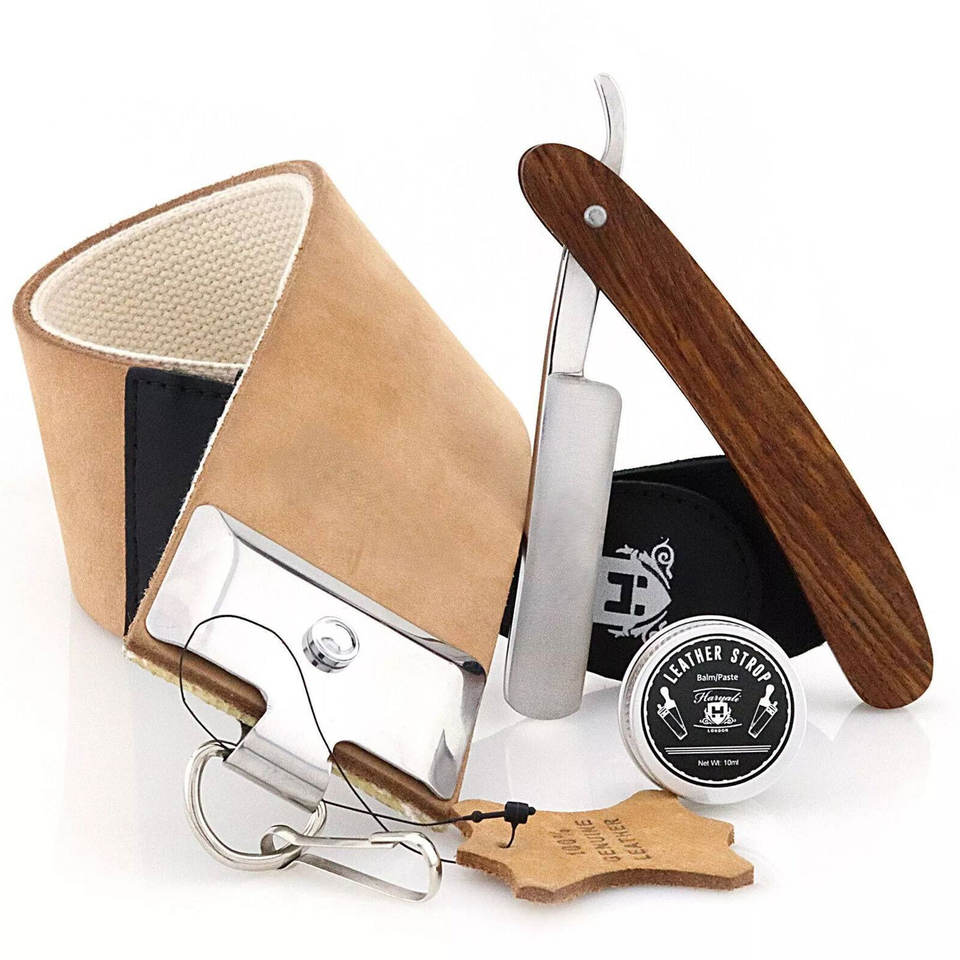 Kit de rasoir à gorge en acier inoxydable de qualité supérieure, cuir à aiguiser, pâte à raser, rasoir de sécurité à double tranchant professionnel pour barbier et salon
