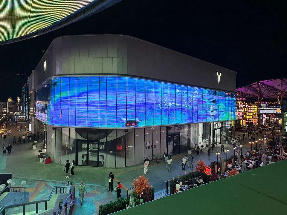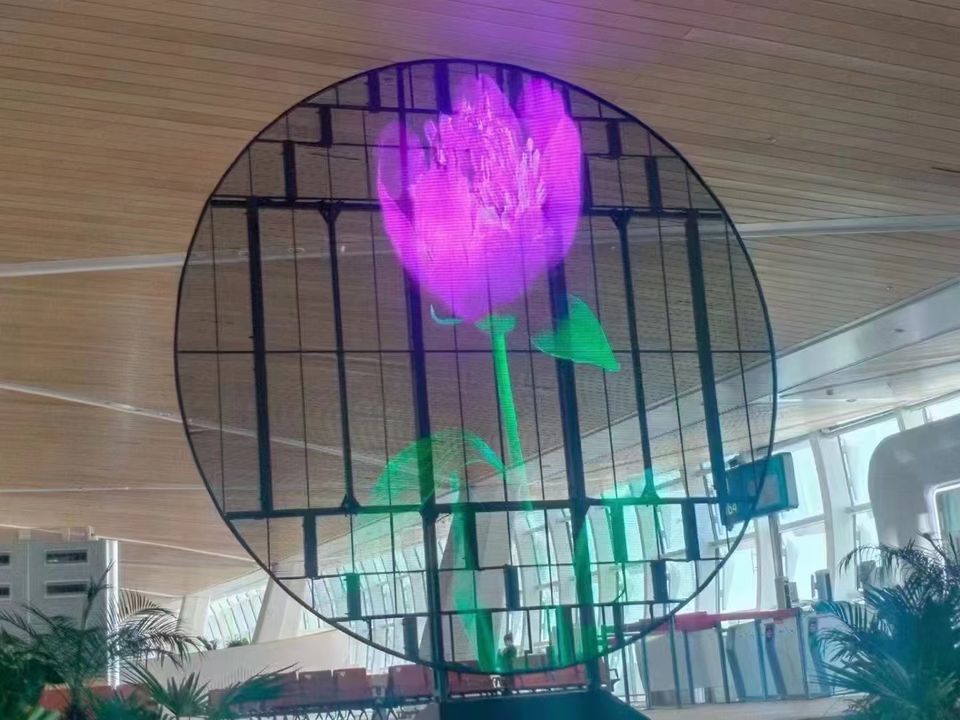 Écran LED transparent couleur premium, luminosité 3000 cd, densité de pixels 32768 px/m pour façade de bâtiment commercial, marque