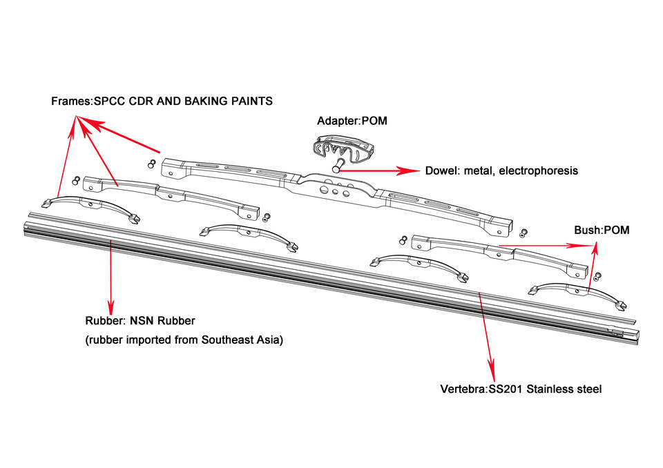 Balai d'essuie-glace hybride de pare-brise automobile universel de qualité supérieure essuie-glace en os pleine grandeur pour bus ou camion