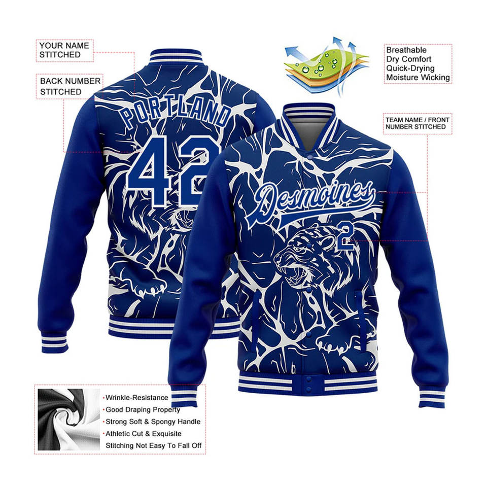 Blouson universitaire haut de gamme style vintage en laine, fabrication OEM, personnalisation de la marque, broderie frontale, patchwork par sublimation