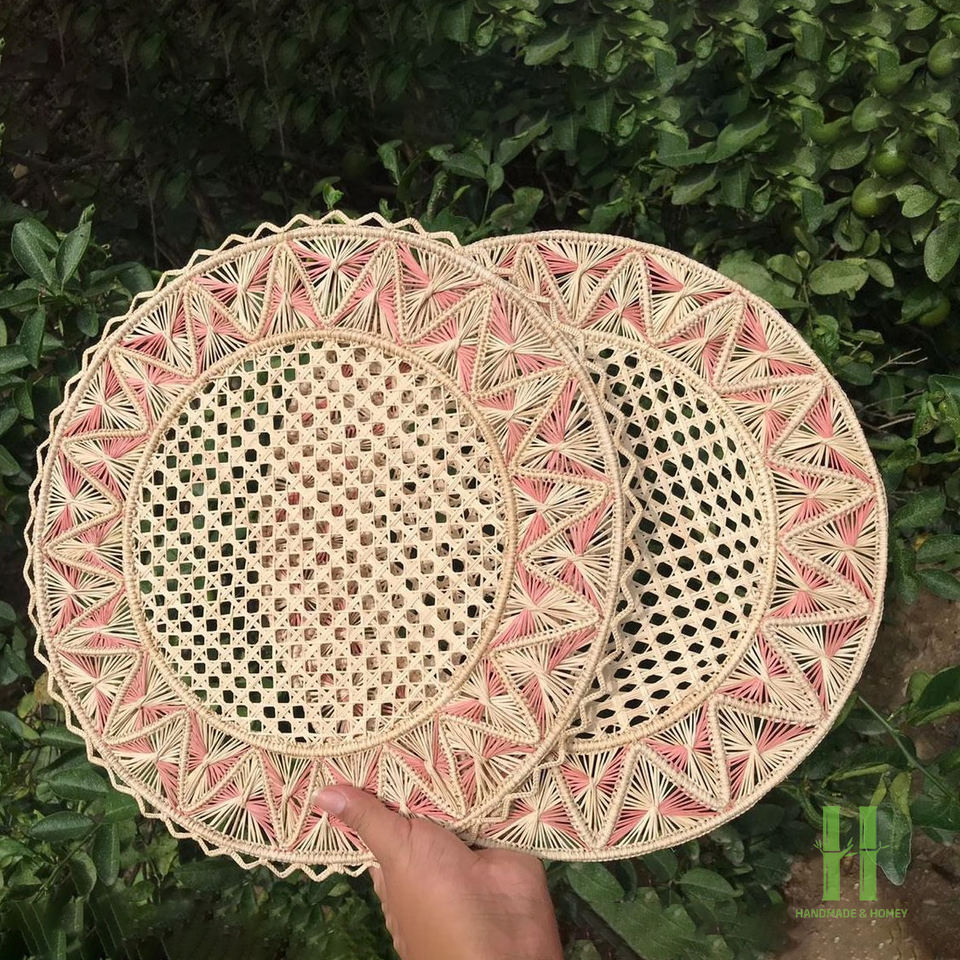 Premium Vintage Paper Rope Placemat Round Spiral Pattern Table Mat Anti-slip Durable Dining Plate Pad Boho Wedding Decoration