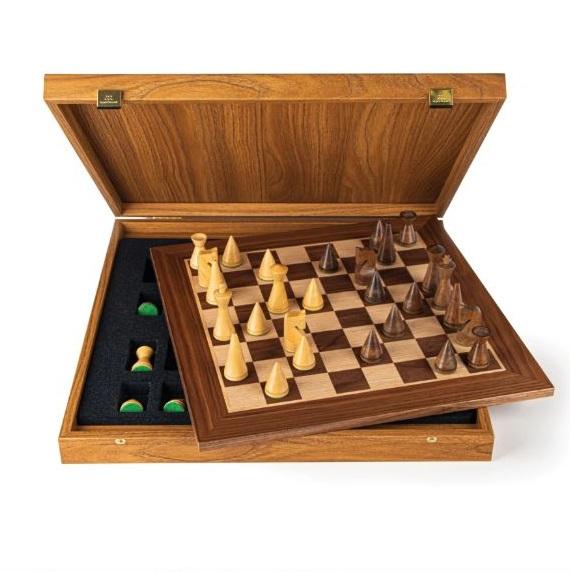 Jeu d'échecs en bois de noyer de qualité supérieure | Design minimaliste moderne | Grand échiquier en bois de luxe avec coffret de rangement intégré, jeu d'échecs