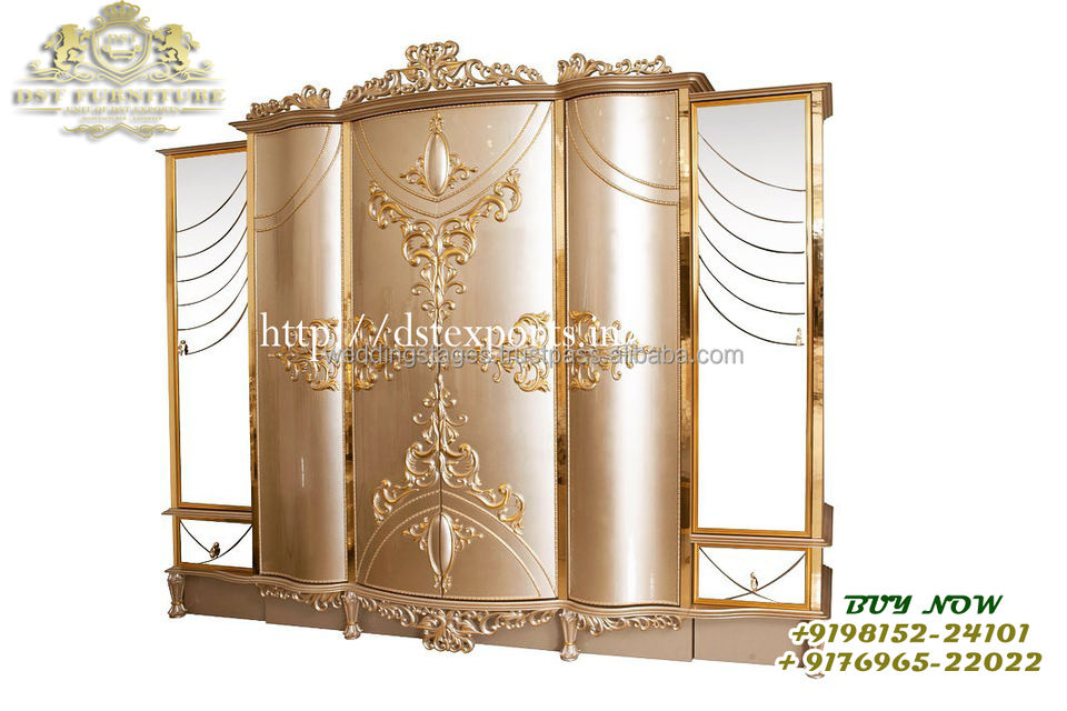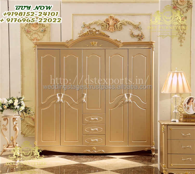 Premium Wardrobe in White & Gold Highlights Royal Rocco Style Designer Almirah Closet Solid Wood 4 Doors Wardrobe Almirah New Arrival