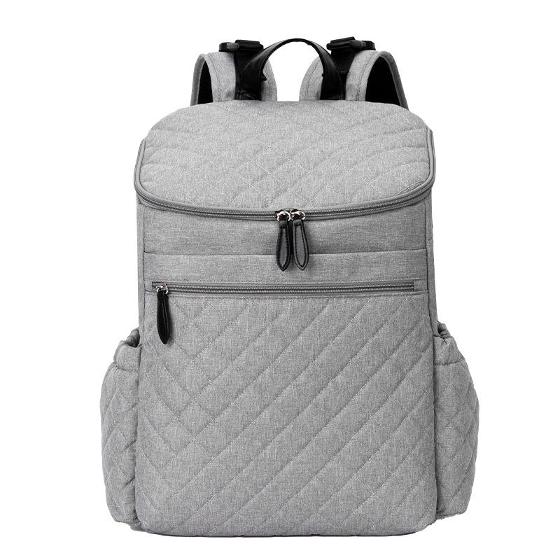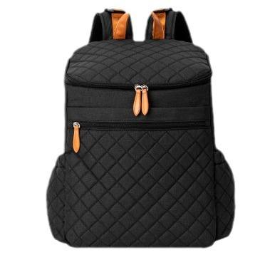 Sac à dos imperméable en nylon de qualité supérieure à motif diamant pour femmes et hommes avec accents en cuir orange et double fermeture éclair