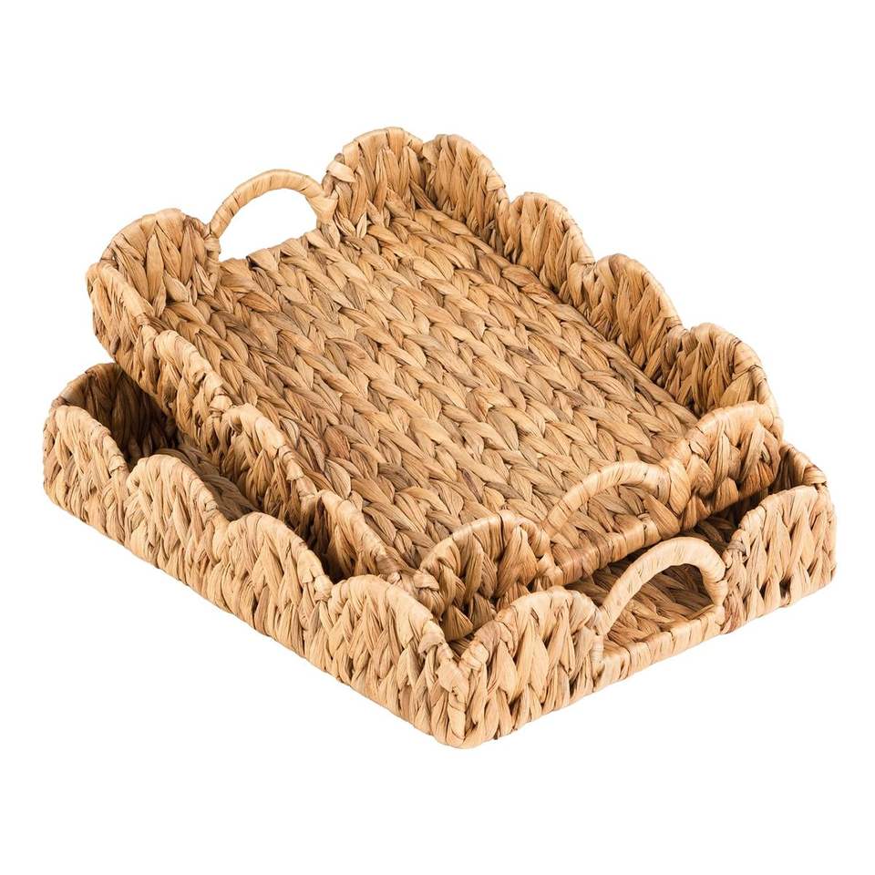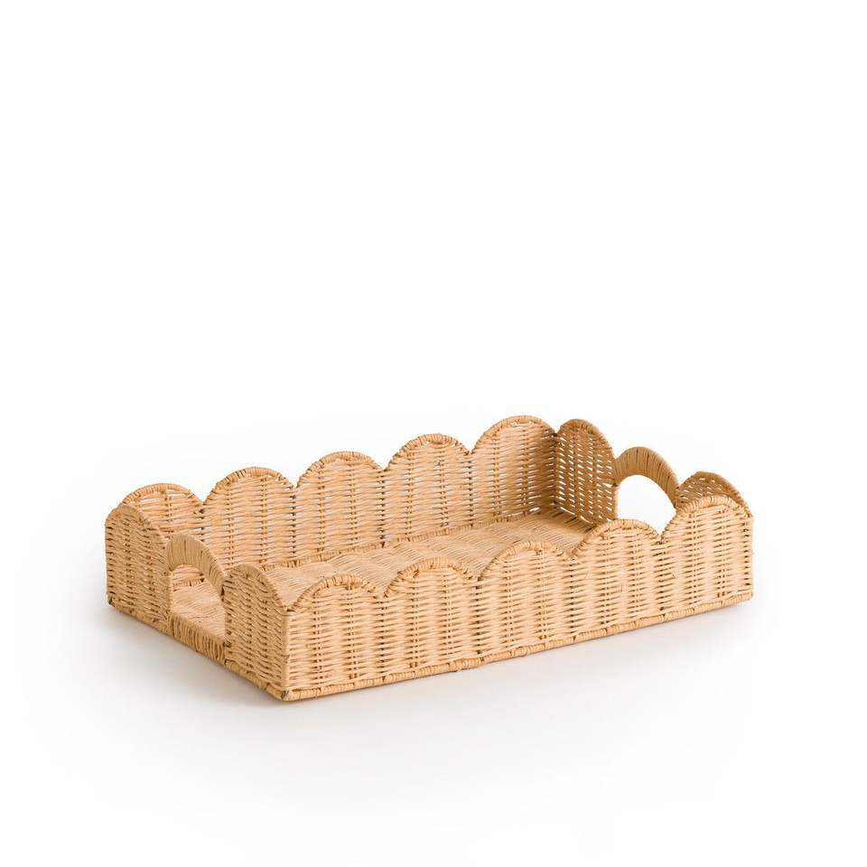 Plateau de service en rotin tressé de qualité supérieure avec côtés profonds, idéal pour présenter des fruits, des serviettes et des arrangements décoratifs pour table centrale