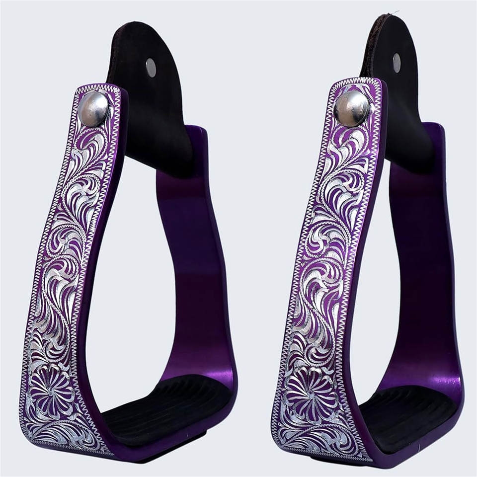 Premium Western Aluminium Slanted Horse Stirrups Floral Engraved Lightweight Wide Tread Base Trail Ranch Rodeo Riding