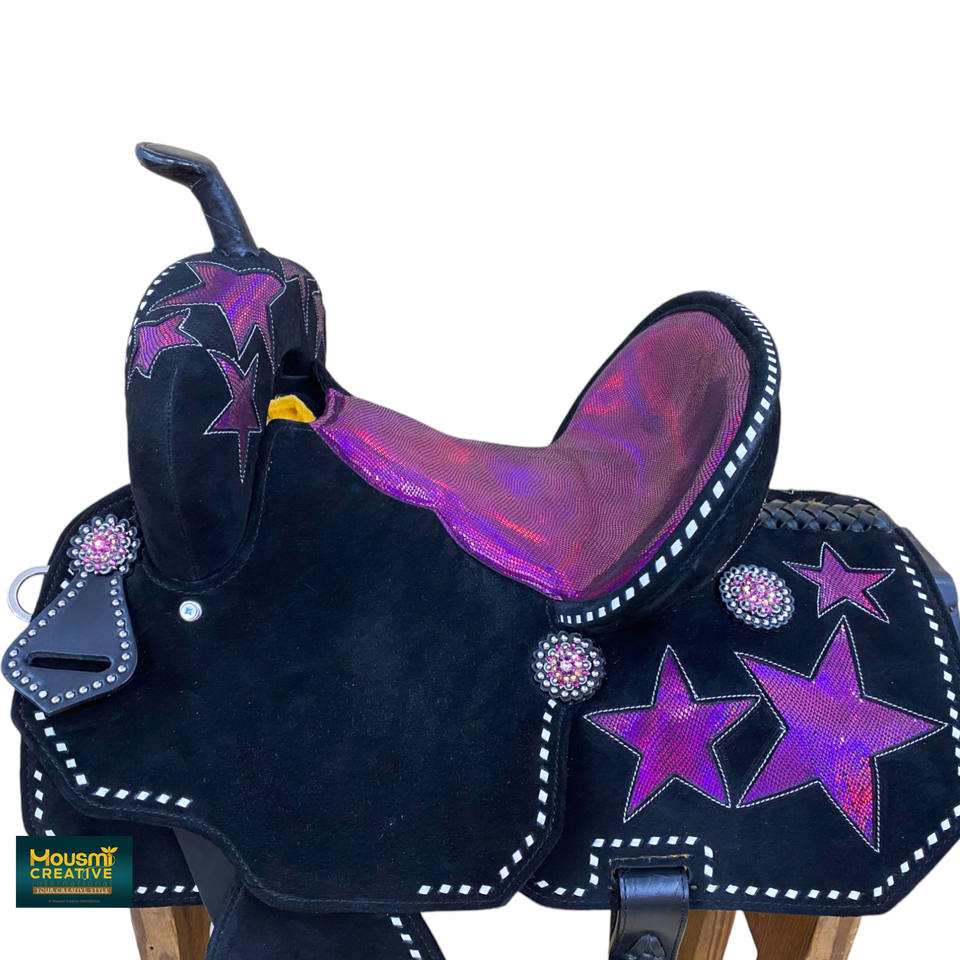 Product name:Western Horse Genuine Cowhide Suede Leather Star Patch Decor Saddle