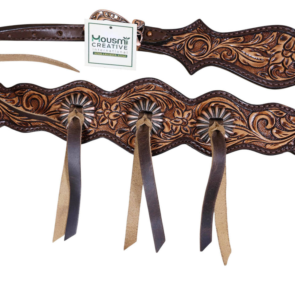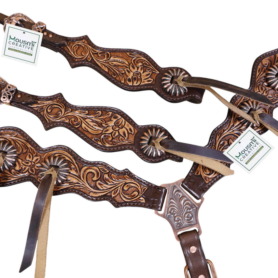 Western Leather Concho Headstall and Breast Collar Horse Tack SetProduct Name