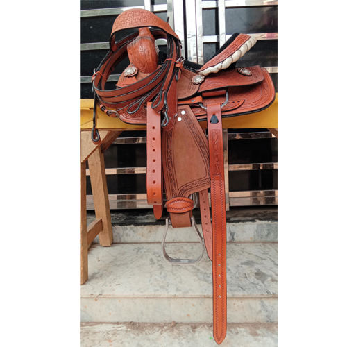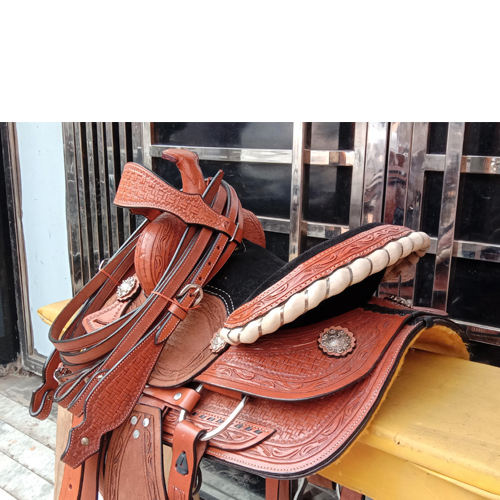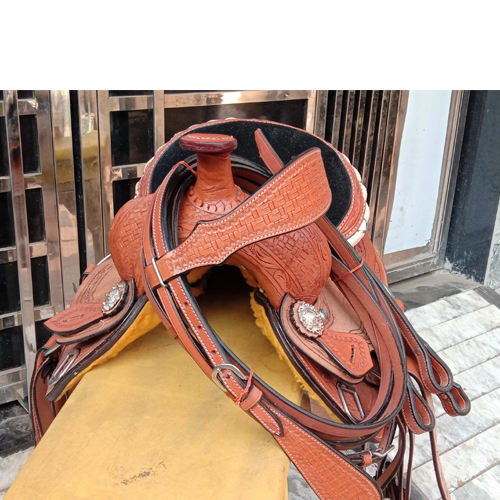 Selle de course de baril en cuir occidental haut de gamme avec arceau en fibre, quincaillerie en acier inoxydable et siège en daim personnalisable