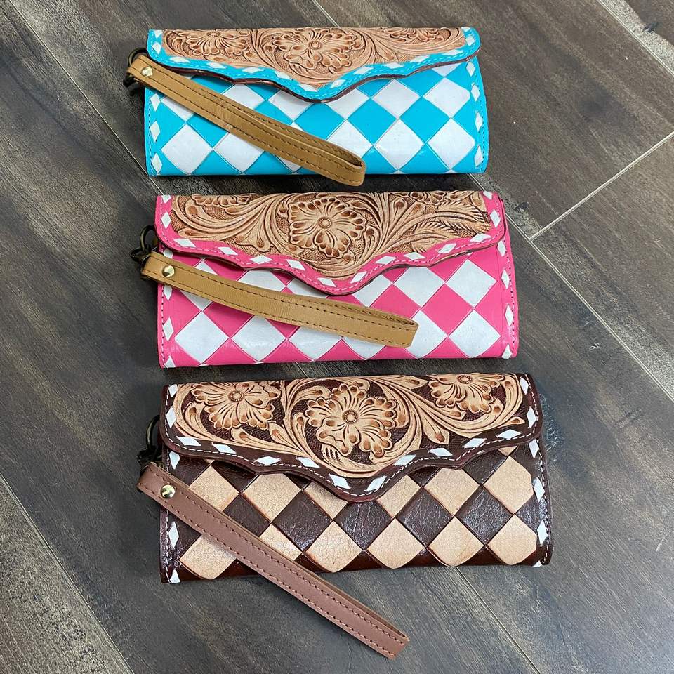 Nom du produit:Portefeuille bracelet en cuir à carreaux façonné à la main