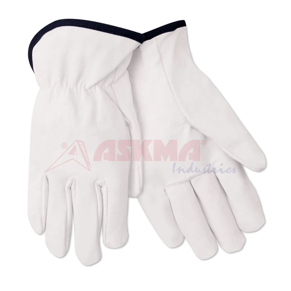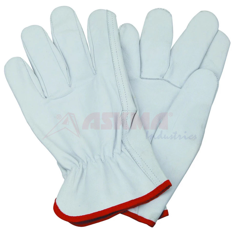 Gants de conduite en cuir de chèvre blanc de qualité supérieure avec pouce droit, certifiés EN388, antidérapants, pour le travail