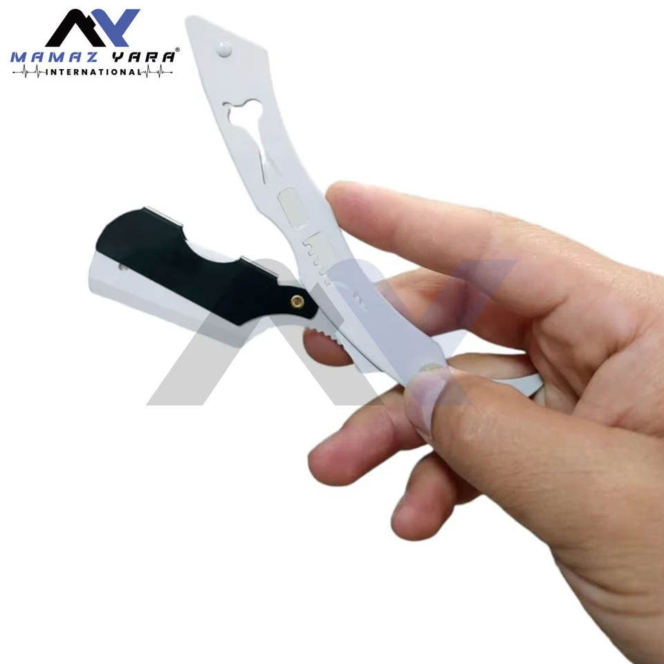 Rasoir de barbier professionnel en acier blanc de qualité supérieure avec système de verrouillage à bascule, étui noir, personnalisation du nom de marque, rasage en douceur, pour salons de coiffure, marquage en gros