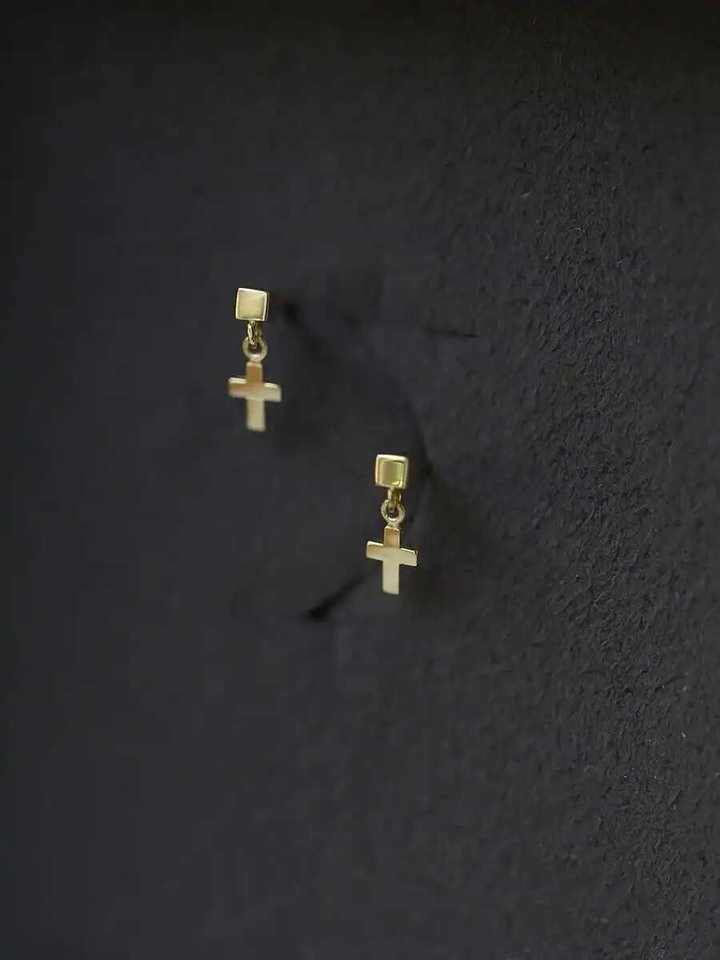 Premium vente en gros 10K or massif Mini carré croix boucle d'oreille, éblouissante minimaliste oreille broche pour Cartilage 2024 nouvelle boucle d'oreille,
