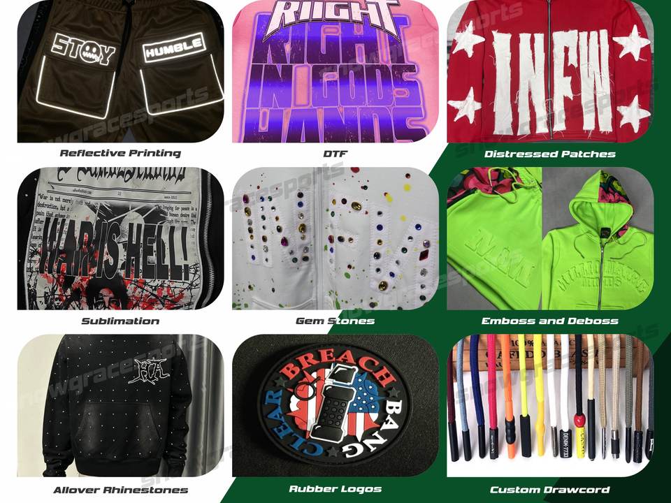 Printing Methods:Discharge Printing, Tie-dye, Puff Printing, Embossed, Heat-Transfer Printing, Digital Printing, Silk Screen Printing, Ready-Made Apparel Direct Digital Printing, Sublimation Transfer Print, Flock Print, Pigment Printing, silicone printing, Crack printing, reflective printing, Plastisol Print