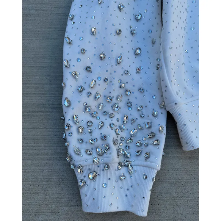 Sweat à capuche surdimensionné en strass de qualité supérieure pour l'hiver, logo personnalisé, 100 % coton, respirant, confortable, streetwear