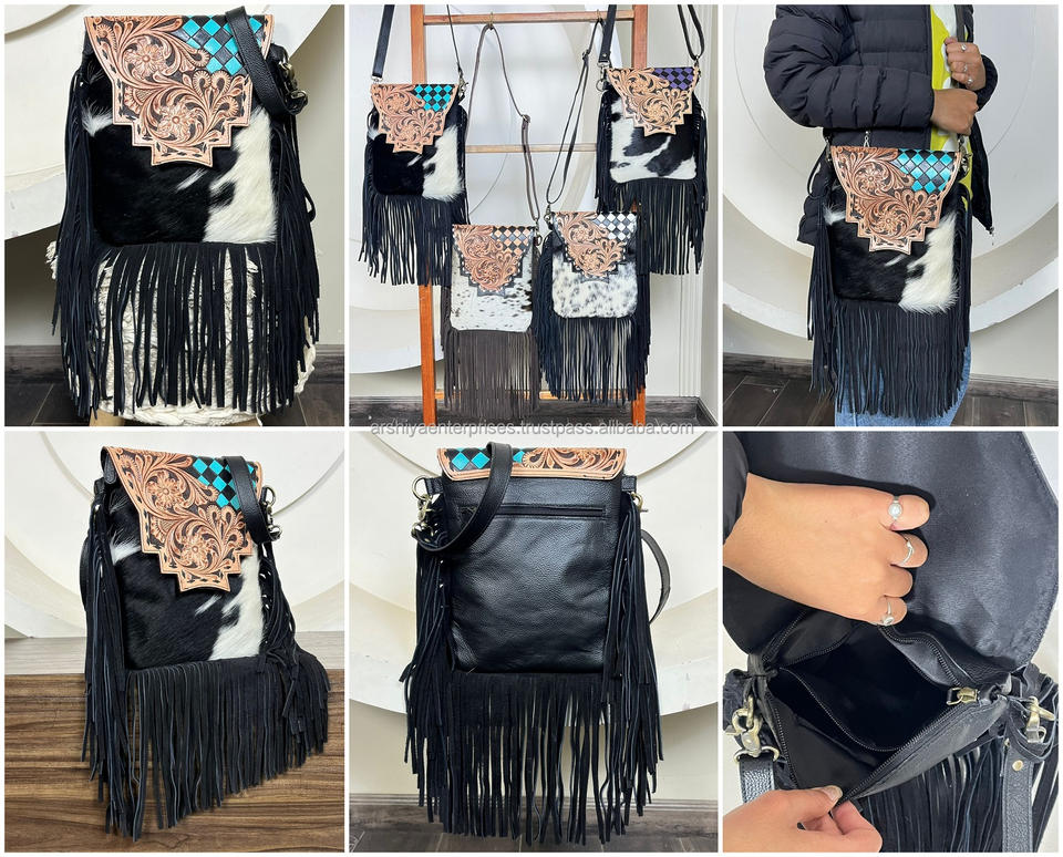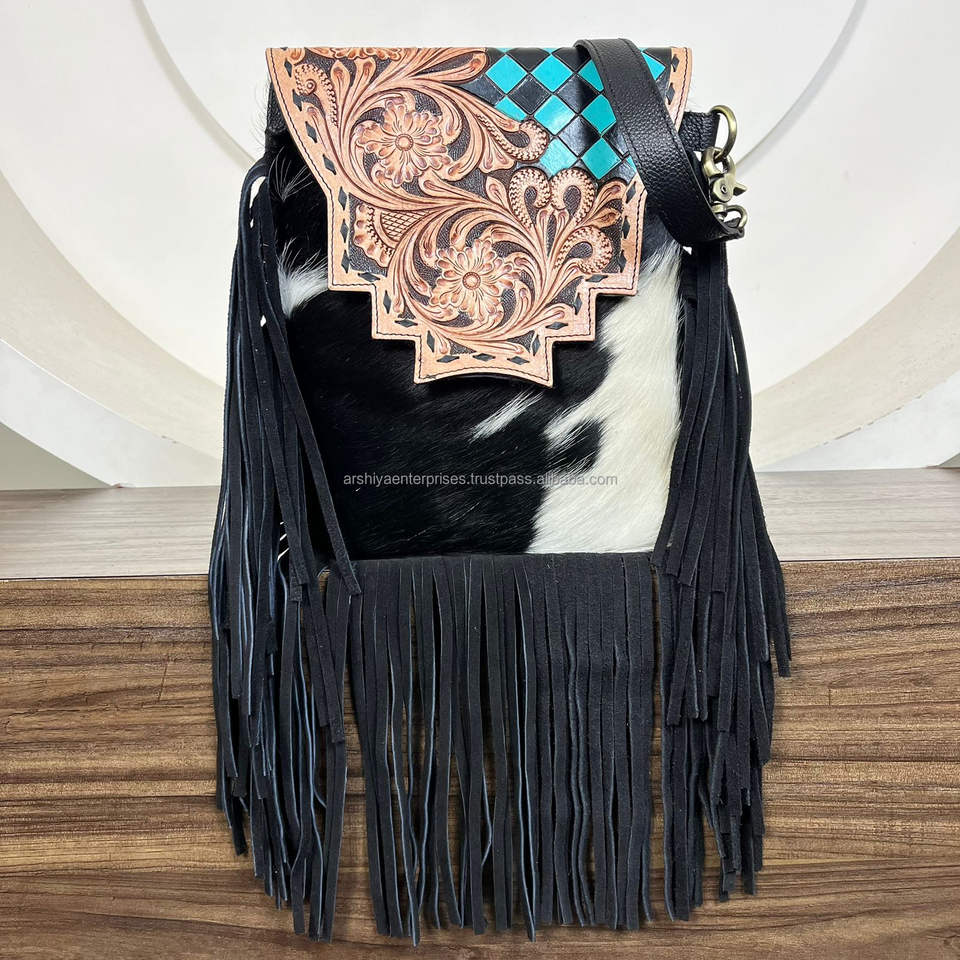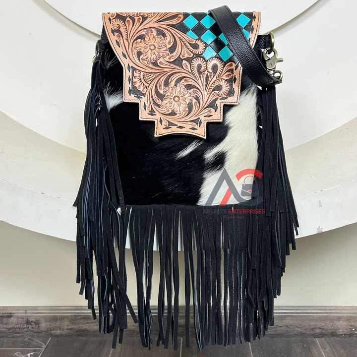 Product name:Hand Tooled Leather Fringe Checkered Crossbody Bag