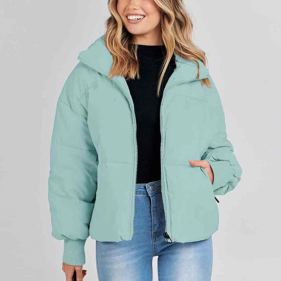Veste matelassée à capuche pour femme, coupe classique, manches longues, matelassage chaud, fermeture éclair sur le devant, rembourrage léger, intérieur confortable, écologique