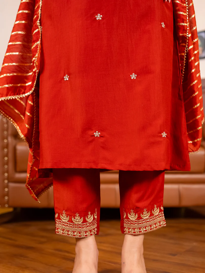 Ensemble Kurta Pantalon Dupatta pour femmes de qualité supérieure Tissu en mélange de soie avec broderie Travail manuel pour une mode ethnique élégante Pour l'exportation