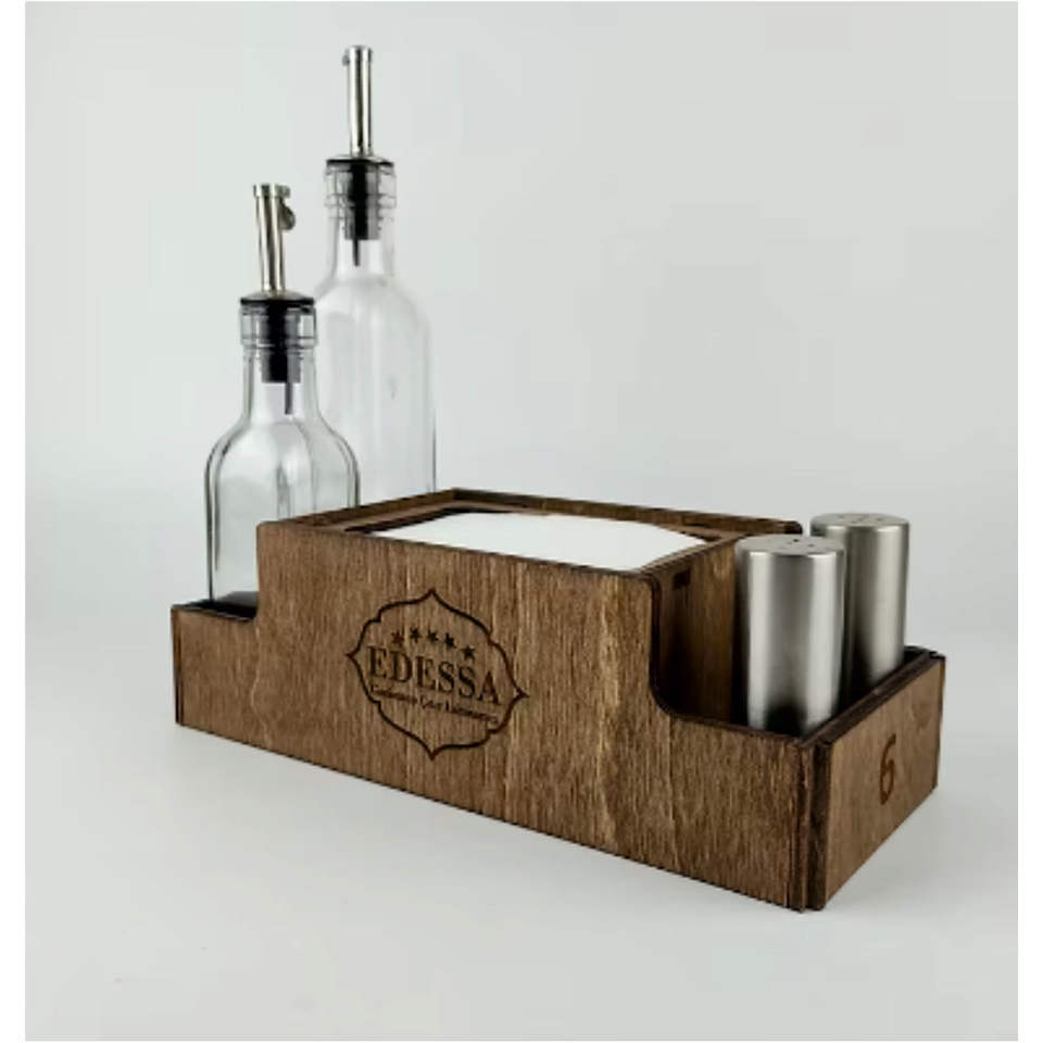 Organisateur de table en bois de qualité supérieure pour condiments, porte-serviettes en papier, support pour salière et ensemble de pots à épices, rangement pour restaurants
