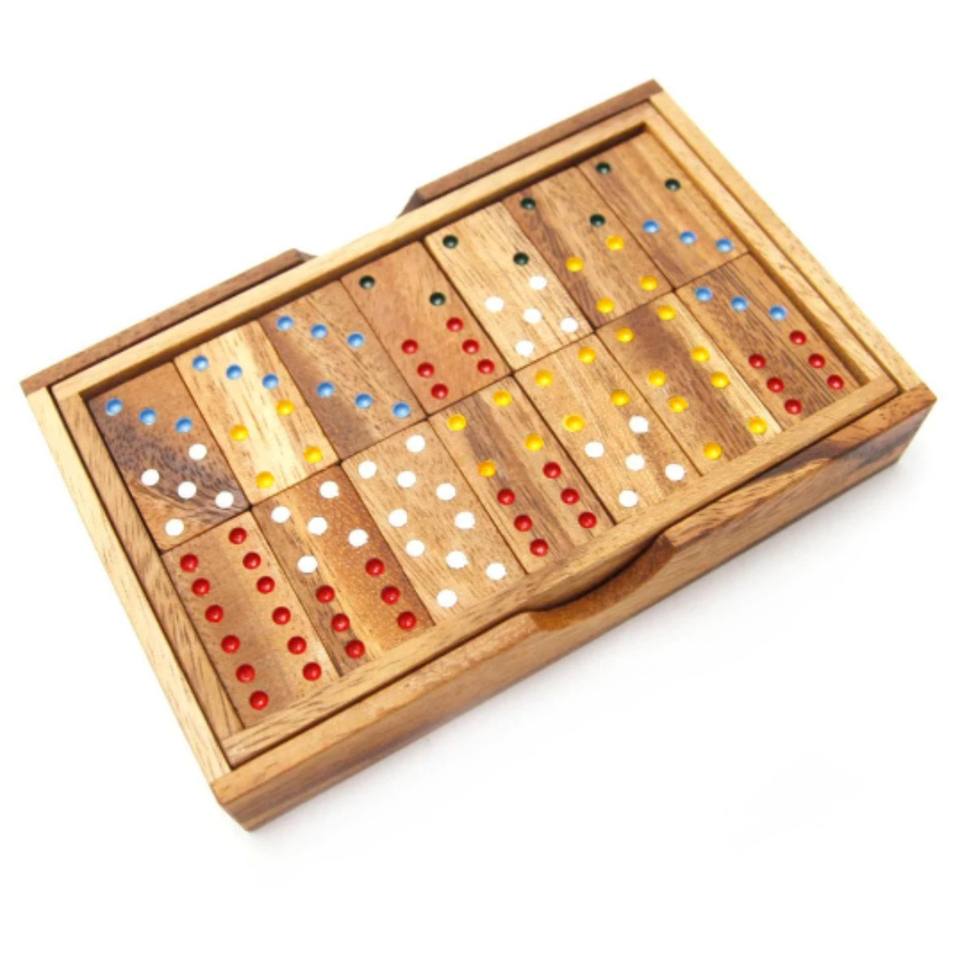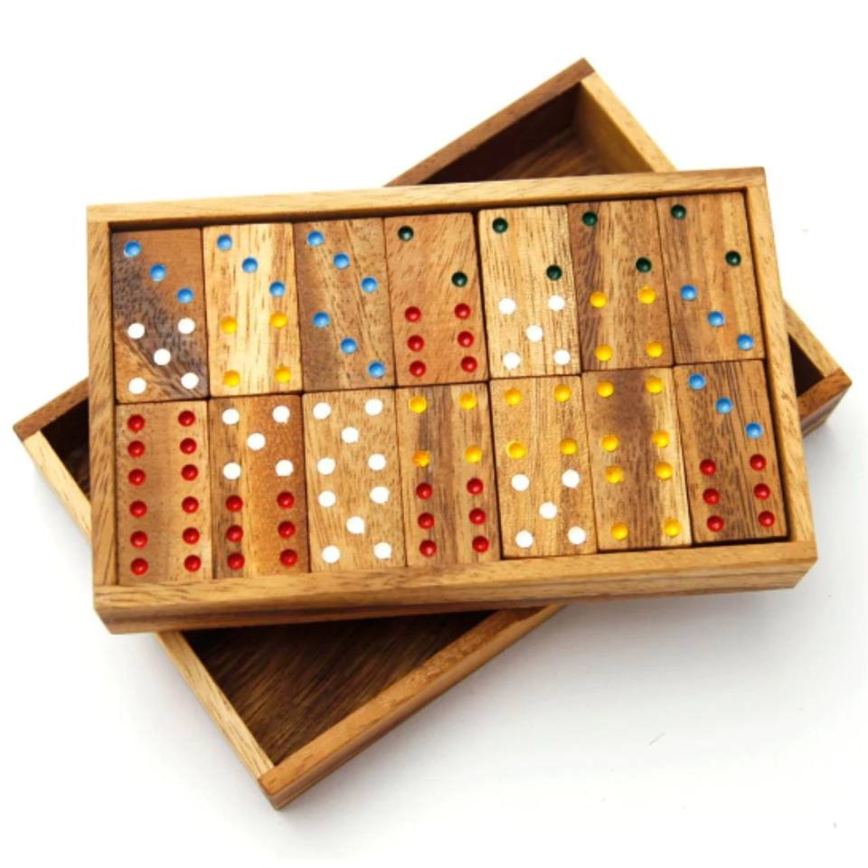 Jeu de dominos en bois de qualité supérieure, dominos double 6 avec points colorés, avec étui en bois, jeux de table classiques, cadeau pour la famille, jouet éducatif pour enfants