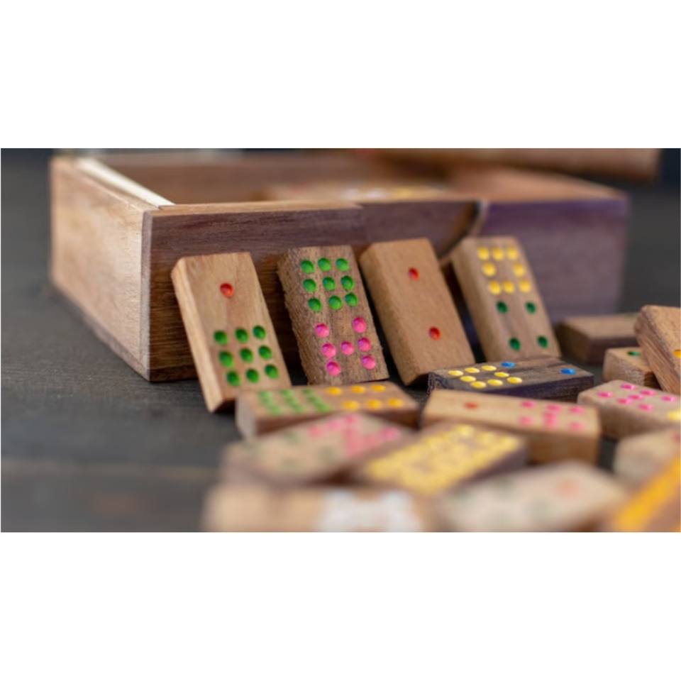 Jeu de dominos en bois de qualité supérieure, dominos double 6 avec points colorés, avec étui en bois, jeux de table classiques, cadeau pour la famille, jouet éducatif pour enfants