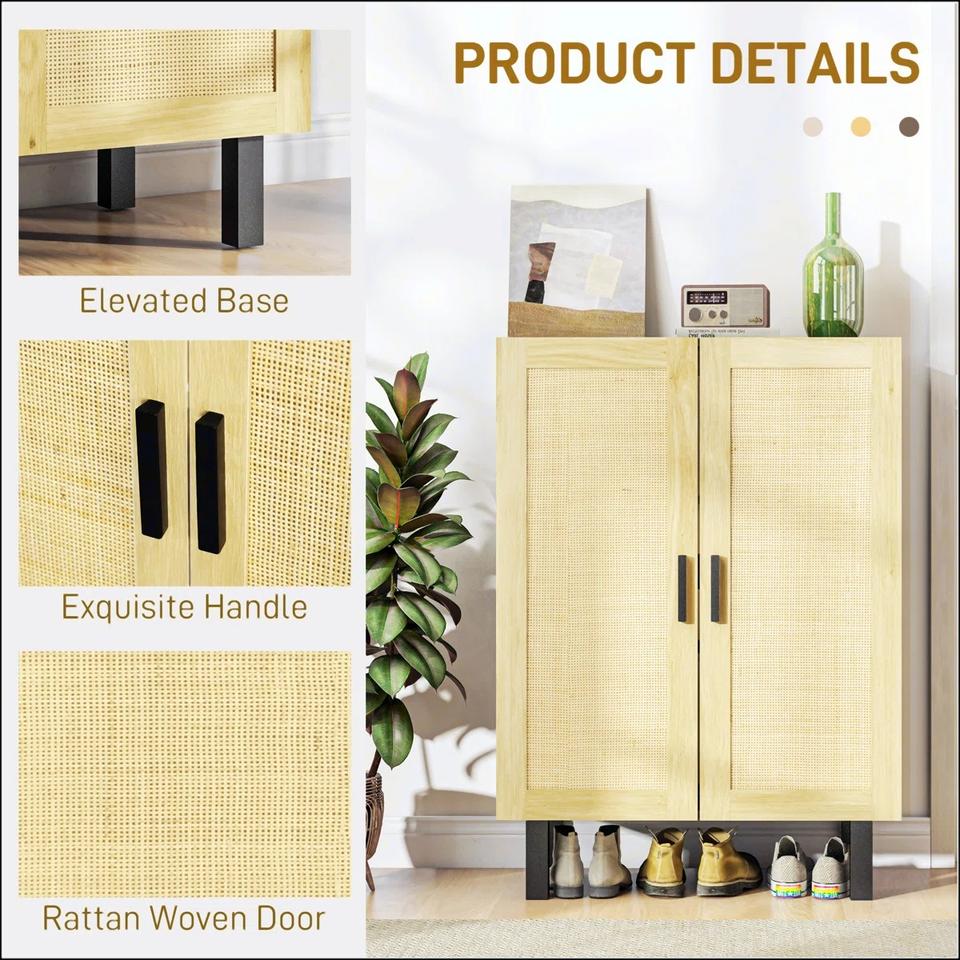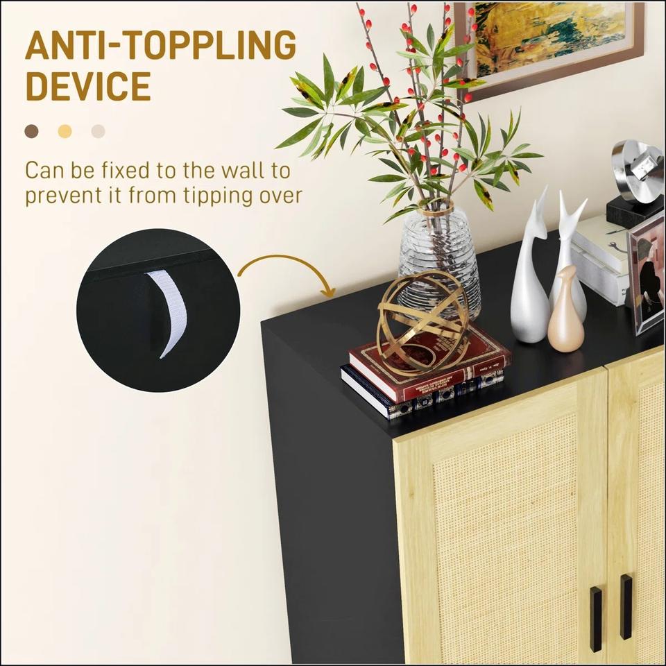 Premium Wood and Rattan Storage Cabinet with Modern Handles Elegant Black and Natural Finish for Living Room and Entryway