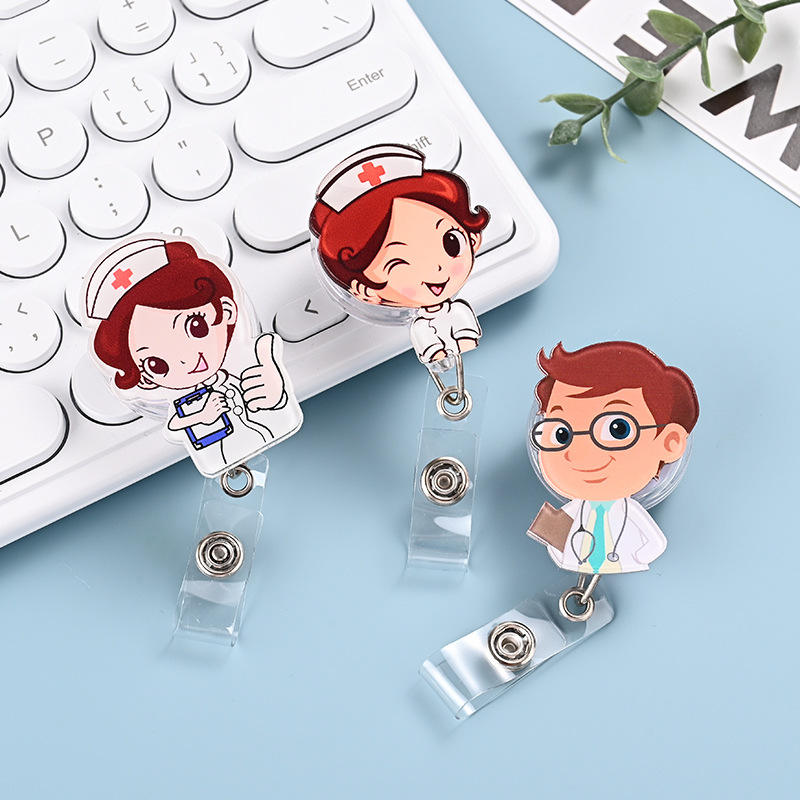 Porte-badge télescopique à boucle facile à tirer, accessoire Yilan Z268 de qualité supérieure, employés, dessin animé mignon, infirmière, médecin, badge de travail