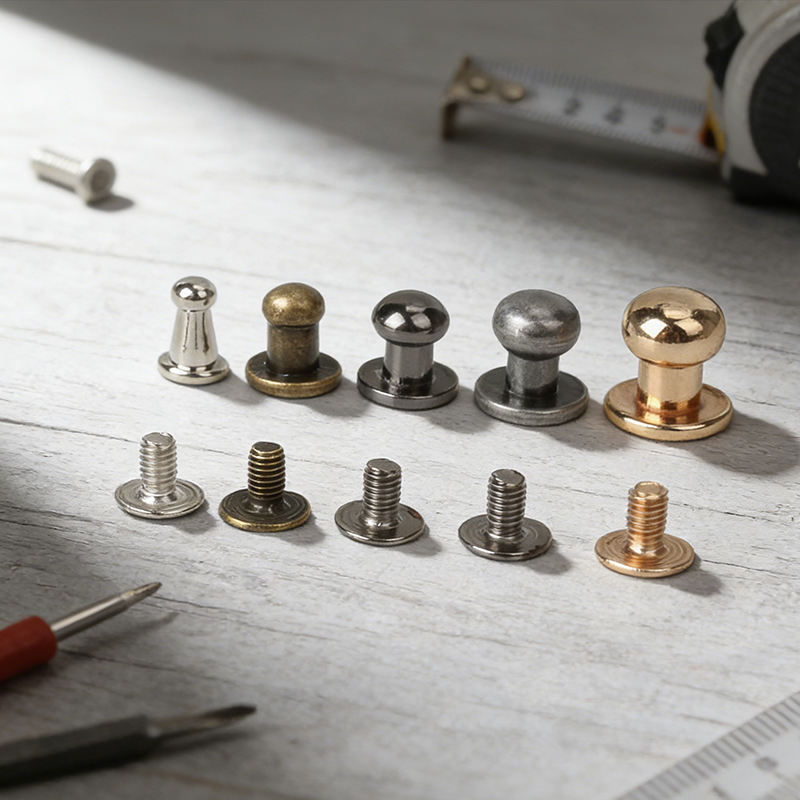 Accessoires d'emballage à usage spécial en alliage de zinc de qualité supérieure, rivets à vis, options pour sacs en cuir, ceintures, portefeuilles et accessoires faits à la main