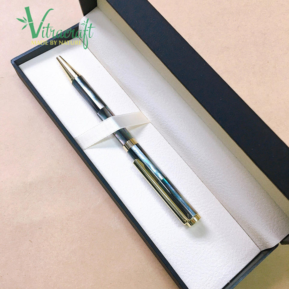 Stylo à bille de qualité supérieure, noyau de stylo à bille en coquille de perle noire. Fabriqué à la main, par des artisans vietnamien. Un cadeau significatif