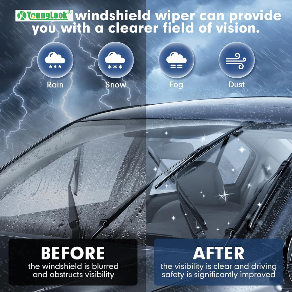 Essuie-glace silencieux sans armature YOUNGLOOK YL-631 Premium pour pare-brise de voiture, toutes saisons, remplacement OEM