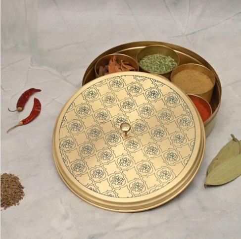 Premium masala box with etching design ideal kitchen storage and Indian gift item masala box available at reasonable price