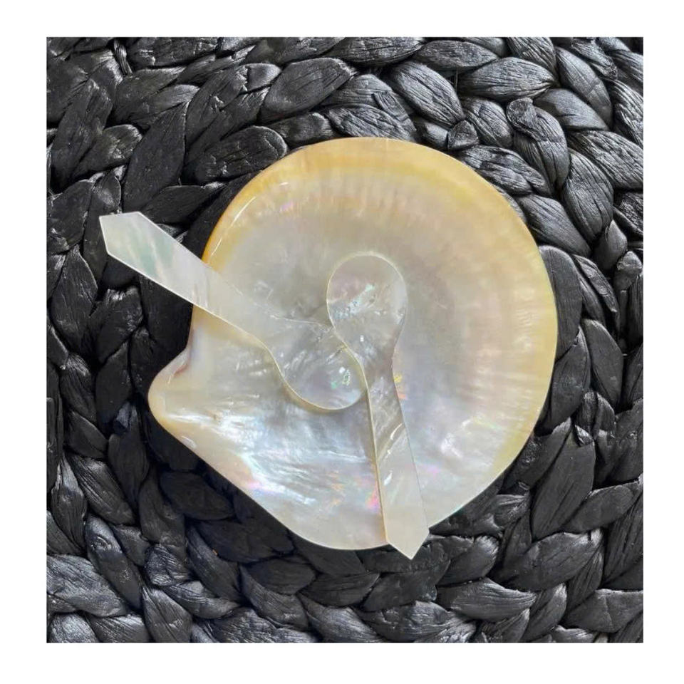 Premium mother of pearl spoon and dish set, perfect for caviar serving Handcrafted Mother Of Pearl Plate For Soap Display