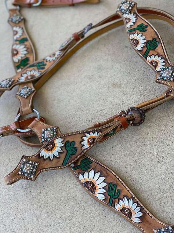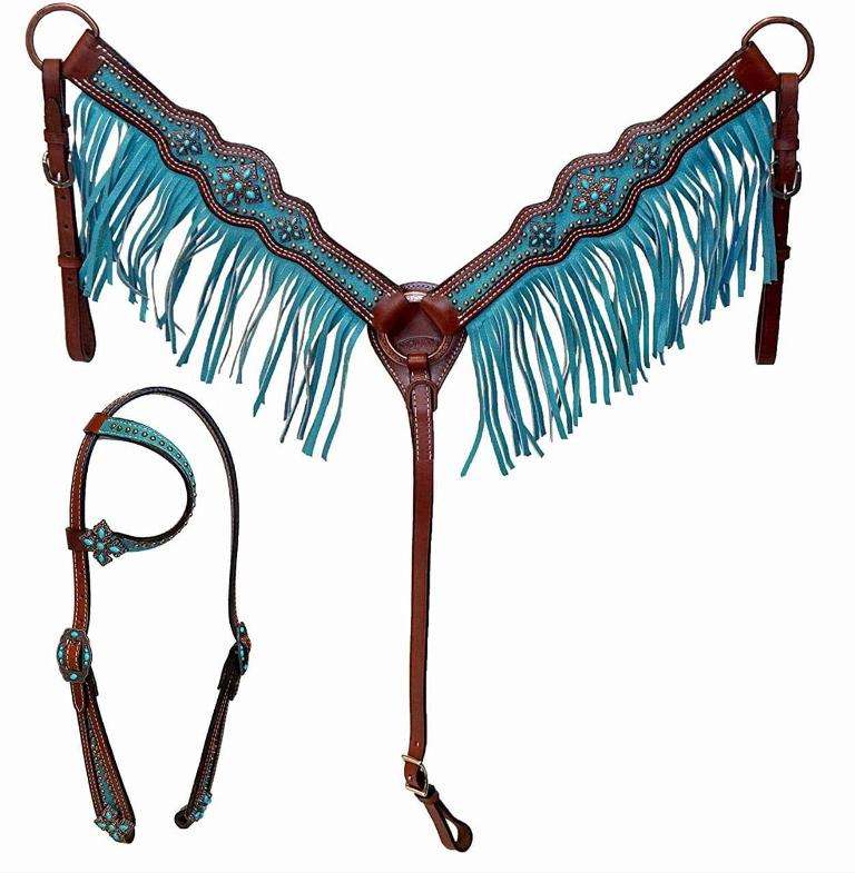 Serre-tête et collier de poitrine en cuir véritable de qualité supérieure nouvellement conçus avec des franges en cuir suédé sculptées à la main