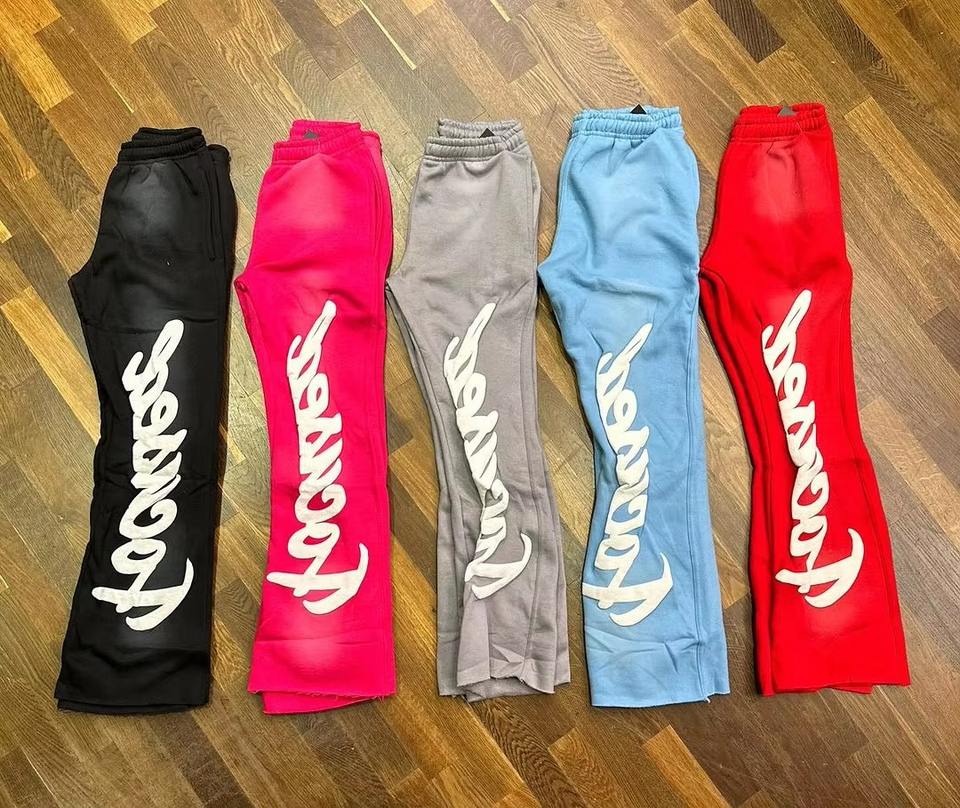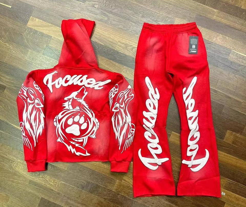 Survêtement vintage multicolore impression bouffante de qualité supérieure pour hommes pantalon évasé personnalisé ensemble à capuche pour hommes