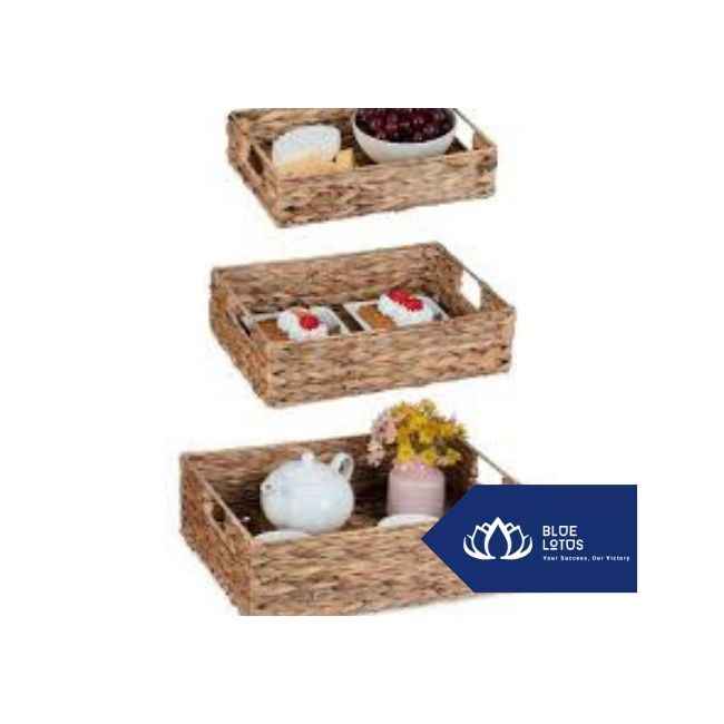 Premium quality handwoven water hyacinth tray basket for eco-conscious home decor use From Blue Lotus Vietnam
