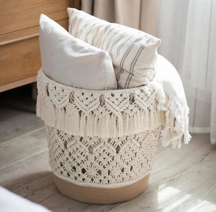 Panier de rangement en macramé