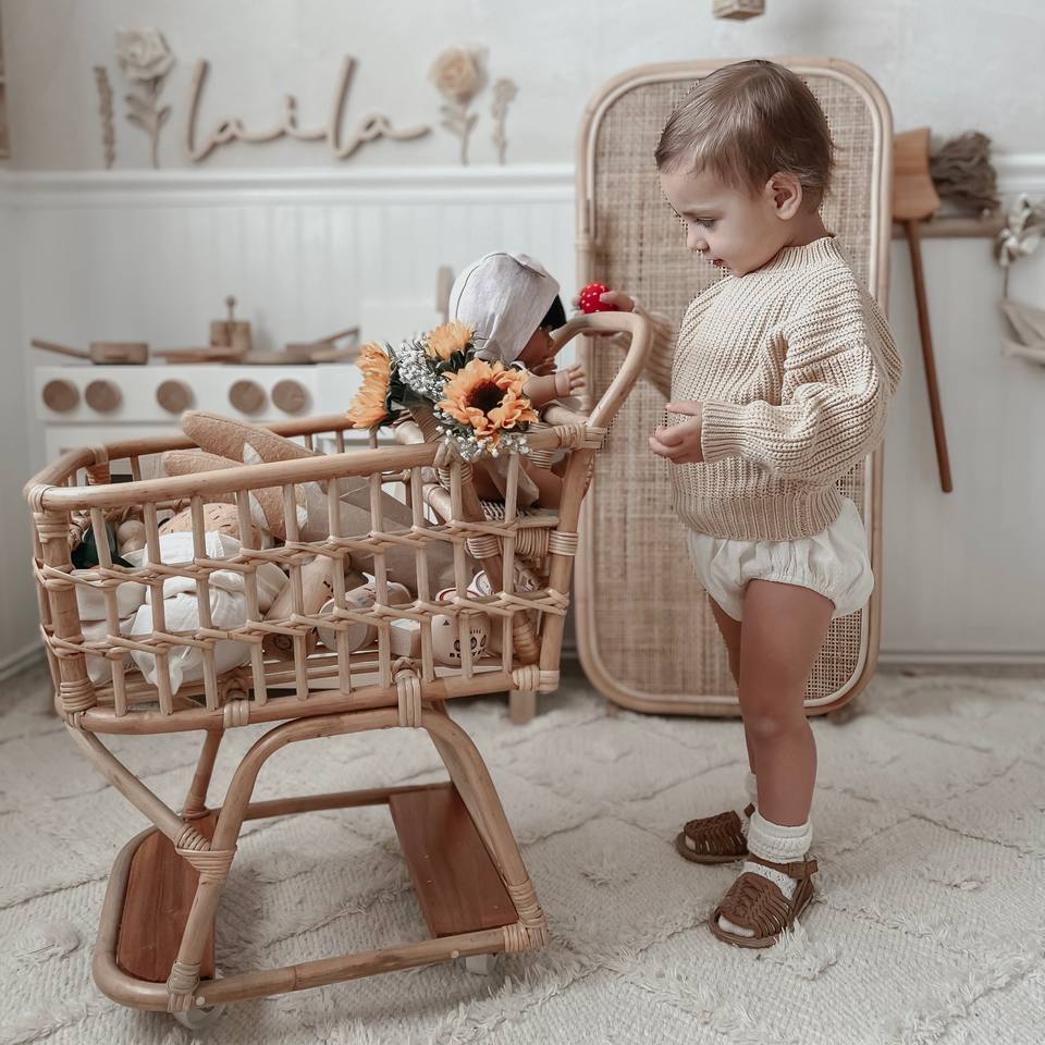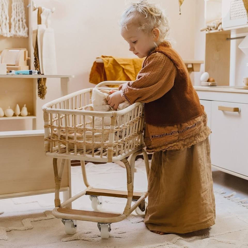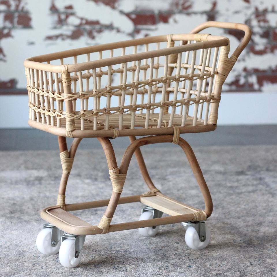 Premium Quality Rattan Shopping Trolleys and Carts Kids Children Baby Shop Supermarket Cart Trolley