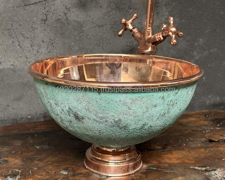 Évier de cuisine en cuivre de qualité supérieure avec bords arrondis lisses et surface martelée artisanale artisanale
